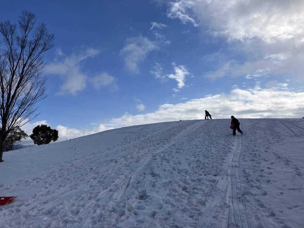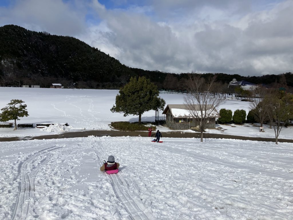 冬の荒神山公園で雪ソリ遊びをしてきたのでレポートします。